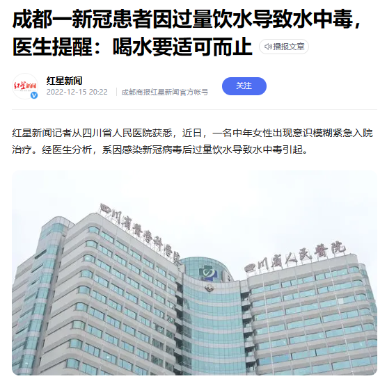 一陽性患者飲水過量“水中毒” !醫(yī)生:24小時(shí)勿超3升